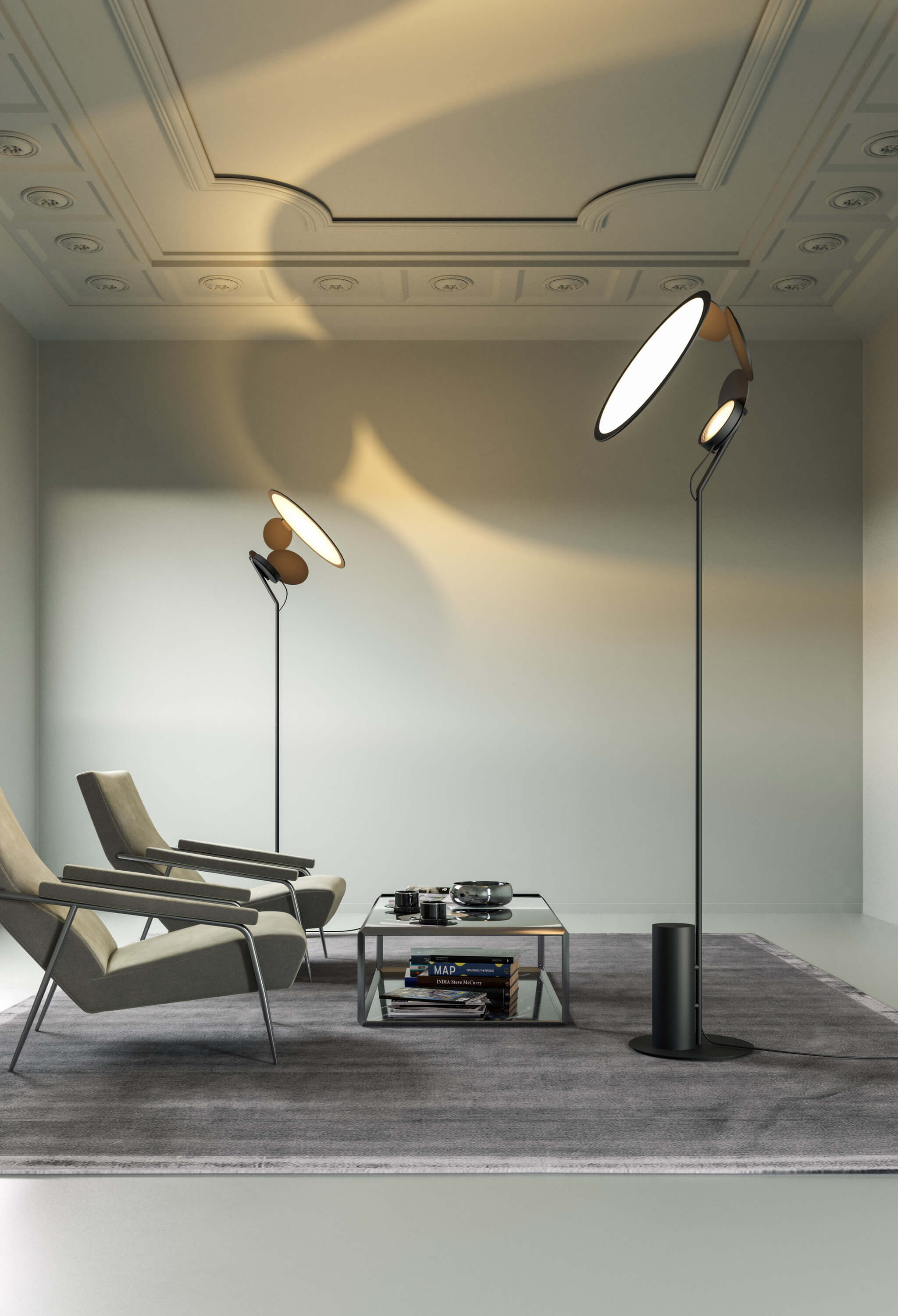Kwic – disegnata da Serge e Robert Cornelissen – è una famiglia di lampade, che si declina in piantana, sospensione, lampada a soffitto o a parete. Un diffusore semi-sferico in vetro soffiato contiene la fonte luminosa a LED integrata e si sovrappone – in posizione decentrata – a un disco circolare in alluminio verniciato, disponibile in tre diversi colori. Le lampade Kwic portano nello spazio una luce intensa, che irradia dal diffusore bianco opalino, e un lieve bagliore che filtra dal retro della montatura. Presenza discreta o protagonista nello spazio, Kwic ha una personalità versatile che si sposa con contesti e stili abitativi differenti.