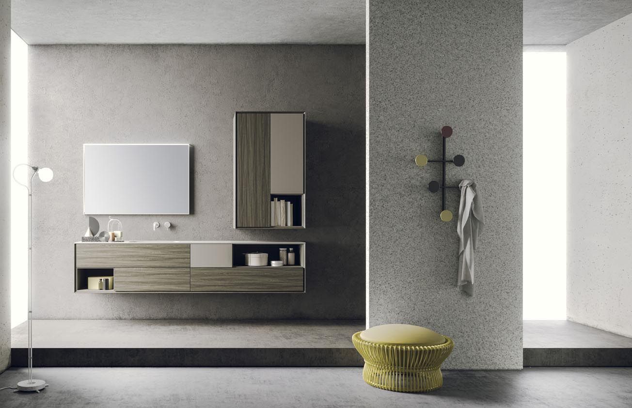 Un’ulteriore novità riguarda gli specchi, disponibili a filo, con strip led o con piccolo profilo in vista, da coordinare con le finiture della collezione. Gli originali specchi con taglio laterale inclinato di 45°, possono essere accostati per creare forme uniche, che rendono l’ambiente bagno più dinamico e divertente. Particolari, inoltre, i contenitori a specchio che permettono di ricavare nuovi spazi di contenimento. Le nuove finiture Metal Acciaio, Titanio e Ottone accrescono le possibilità di personalizzazione per i frontali, già disponibili in laccato lucidi o opachi, in sette finiture di HPL, quattro melamminiche e quattro in cemento. In alternativa alle ante con meccanismo push-pull, Libera+ offre ora aperture con gola applicata direttamente sul contenitore.