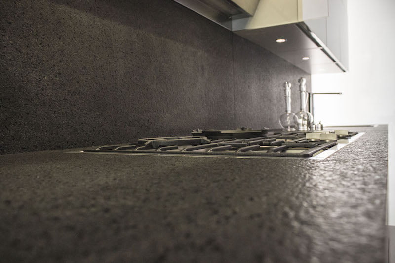 Difetti: la pietra è un materiale poroso che affianca ai pregi estetici alcuni difetti funzionali: l’acidità di molti alimenti, tra cui i pompodori, agrumi in generale, aceto e tanti altri alimenti di consumo comune tendono a modificare il colore della pietra che, se non adeguatamente trattata, potrebbe riempirsi di macchie e aloni antiestetici. I trattamenti con vernici protettive adatte a venire al contatto con gli alimenti va ripetuto nel corso degli anni aumentanto i costi di manutenzione. Ovviamente, il top in pietra naturale è soggetto a spaccature e scheggiature: spesso i danni sono riparabili con l’utilizzo di specifici mastici e, a nostro avviso, una spaccatura riparata correttamente – anche quelle che lasciano una venatura  ben visibile! – potrebbe diventare un punto di forza anziché un difetto.